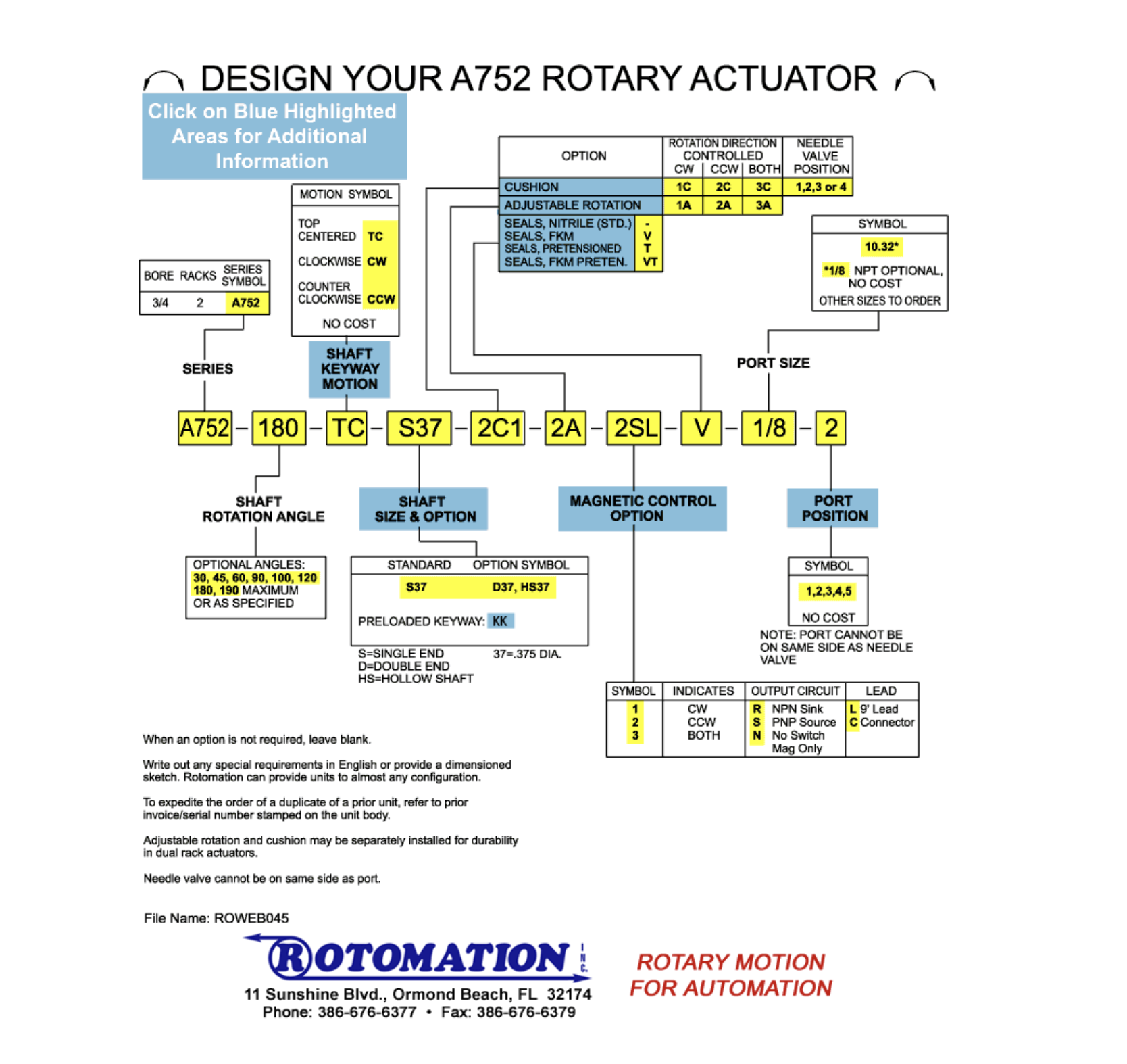 See the A752 Compact Rotary Actuator Part Number page for detailed configuration and option information.